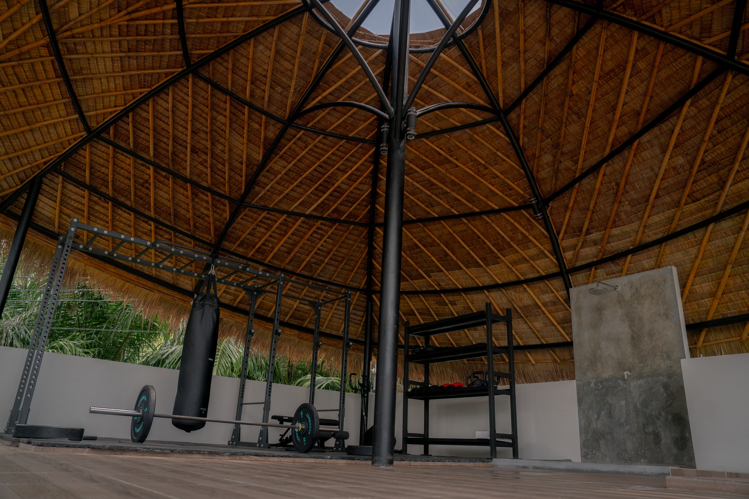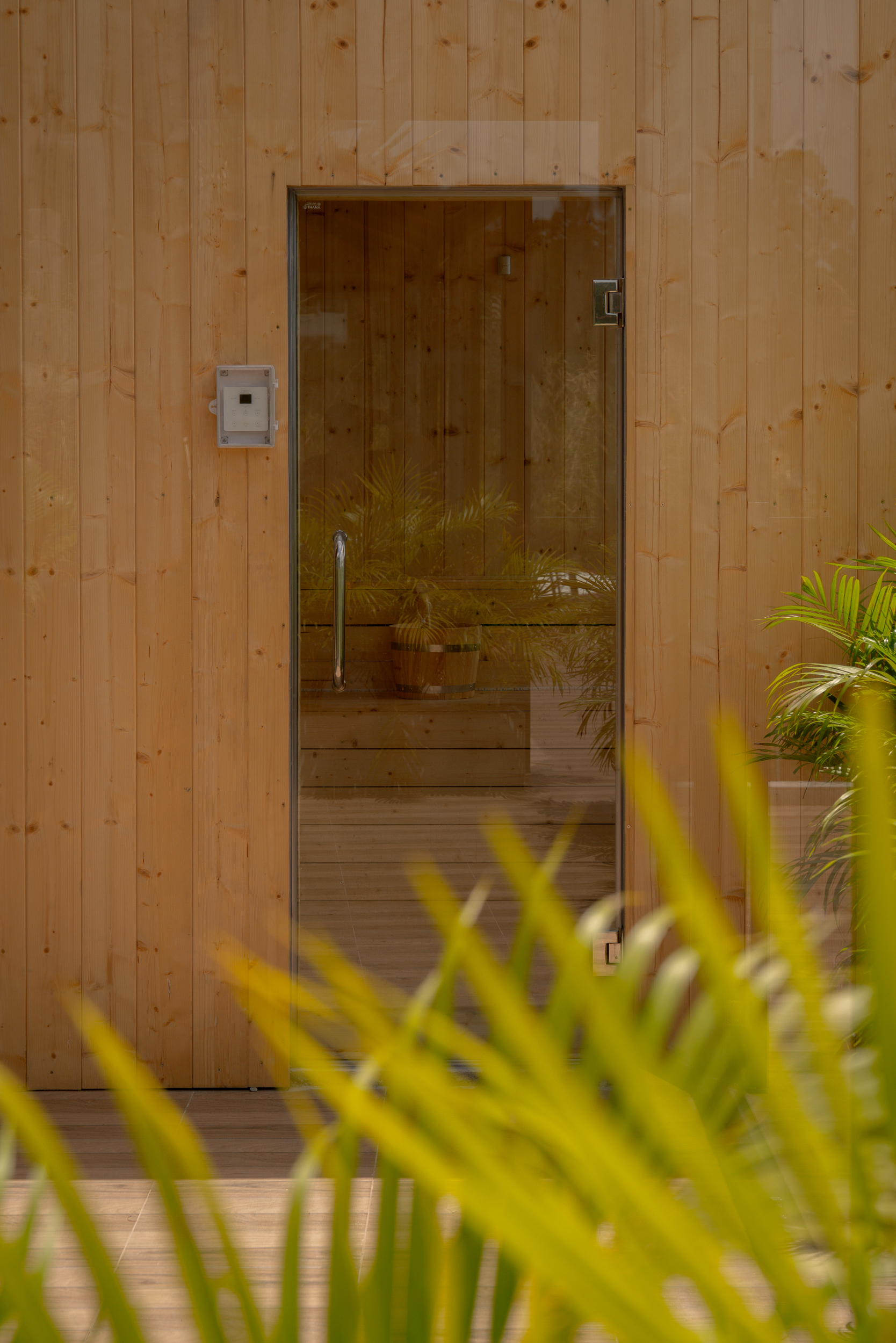 The rooftop includes a glass-enclosed 70 sqm office with panoramic sea views, an open-air gym, sauna, and ice bath.